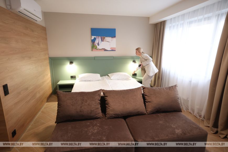 По словам Анастасии Глины, в 2025 году в областном центре открыто пять новых объектов размещения – два бутик-отеля, два хостела и отель «Неман». К слову, первых гостей «Неман» (раньше это была гостиница «Беларусь») принял в октябре, после реконструкции он работает в тестовом режиме. К бронированию здесь доступно 198 номеров различной категории (стандартные номера (одно- и двухместные), экономкласса, номера люкс и семейные). С выходом на полную мощность здесь будут созданы 65 рабочих мест.