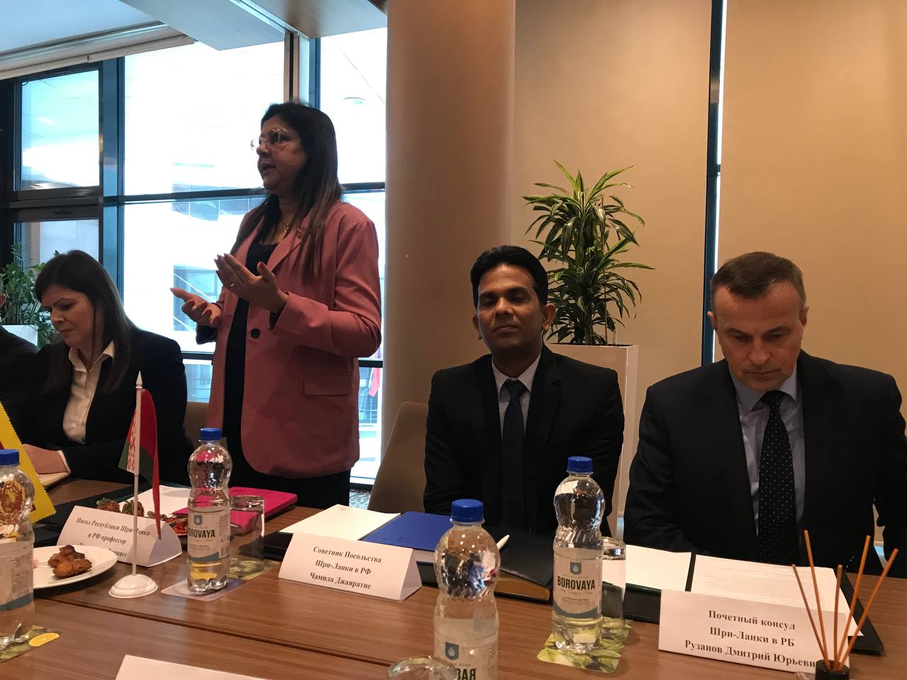 12 января в рамках рабочего визита в Республику Беларусь Посла Демократической Социалистической Республики Шри-Ланка в Российской Федерации профессора Джаниты Абейвикремы Лиянаге был проведен круглый стол на тему: «Опыт и перспективы двустороннего сотрудничества Республики Шри-Ланка и Республики Беларусь». В ходе мероприятия состоялись выступления госпожи Посла и советников Посольства Шри-Ланки в Российской Федерации, посвященные вопросам развития более тесного сотрудничества между двумя странами, и выступление Директора Национального агентства по туризму Дмитрия Викторовича Морозова, презентовавшего туристический потенциал Республики Беларусь и обозначившего возможность проведения рекламно-информационного тура; также состоялась презентация открытия офиса Почетного консула Шри-Ланки в Республике Беларусь.